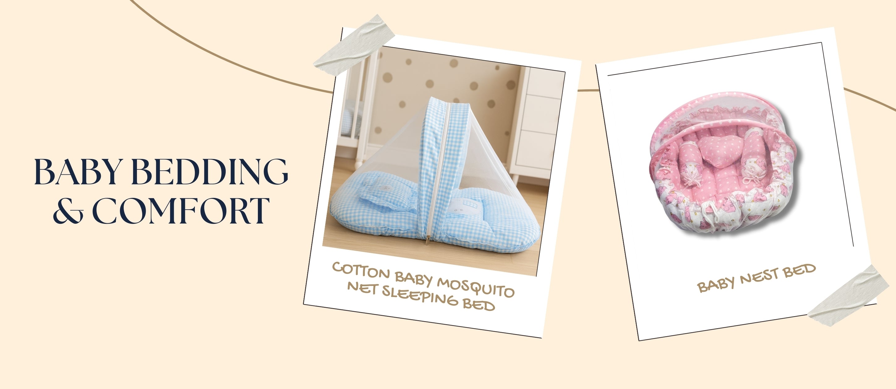 Reversible Baby Nest Bed with Mosquito Net & Pillows – For Boys & Girls